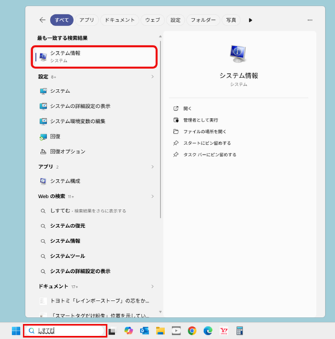 検索結果が出たところで「システム情報」をクリックします。