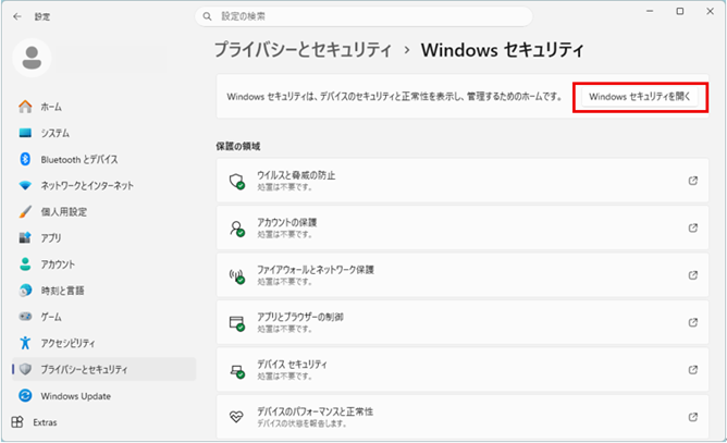 画面が切り替わったら「Windowsセキュリティを開く」をクリックします。