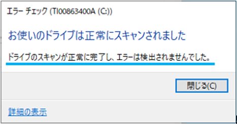 「ドライブのスキャンが正常に終了し、エラーは検出されませんでした。」